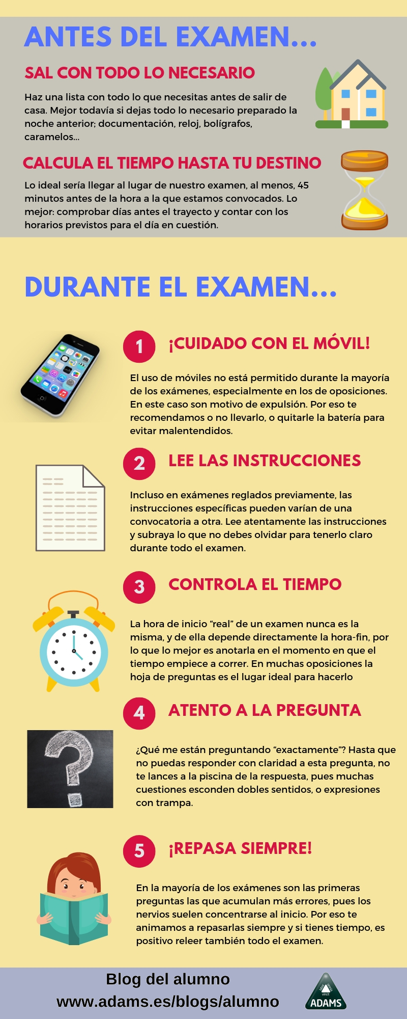 Una infografía sobre consejos para preparar los exámenes. Vía Adams